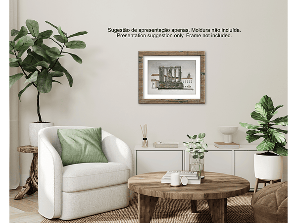 Original watercolor representing the Roman temple, in Évora, with the museum, library and Cathedral as a background.